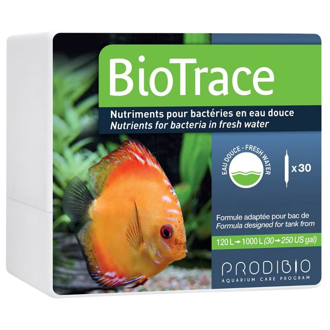 BIOTRACE es un producto natural que actúa sobre los bioactivadores celulares. Dinamiza el metabolismo celular de la mayoría de las bacterias presentes en un acuario de agua dulce y refuerza las reacciones biológicas aumentando el número de las bacterias, y en consecuencia optimizando la calidad del agua.