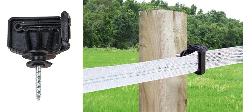 Aislador de tirafondo recomendado para cinta. Fabricado en plástico virgen, con gran resistencia a losrayos Ultravioletas. El diámetro del tirafondo es de Ø 5 mm. Indicado para cable, hilo y cinta de hasta 40 mm.