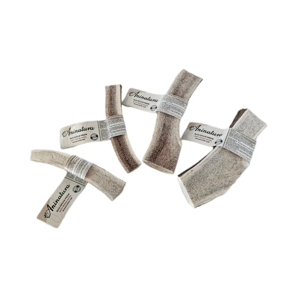 100% asta de ciervo, cortado, lijado. Hecho en España.