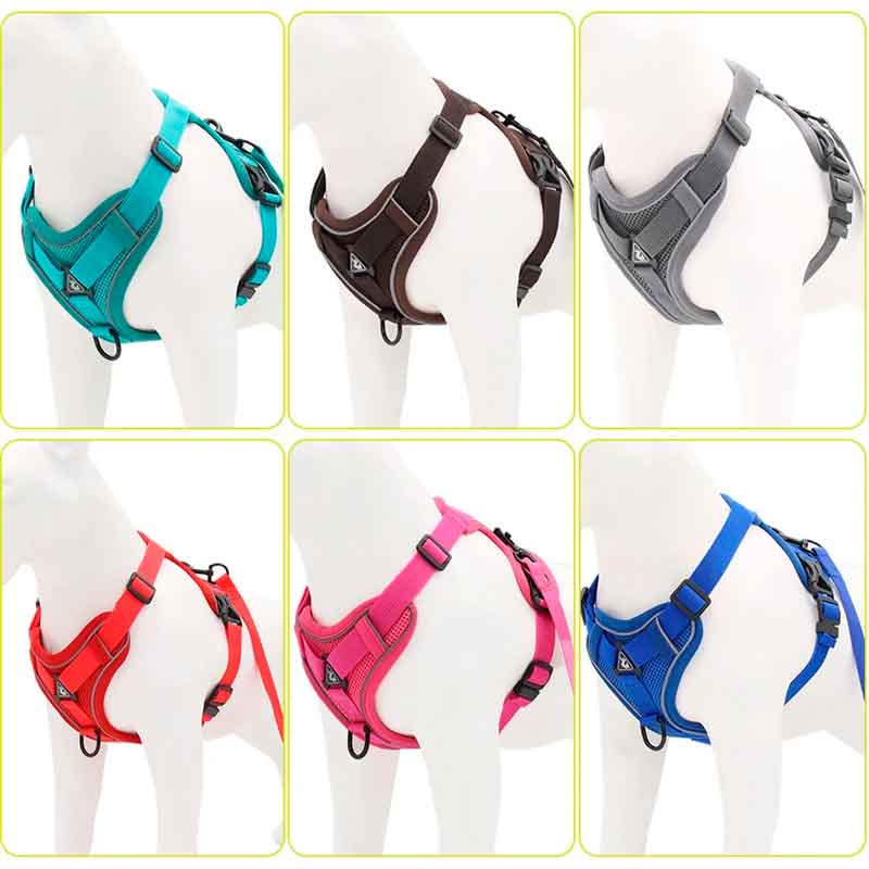 - La seguridad es una prioridad, por eso nuestro arnés está equipado con bordes reflectantes estratégicamente ubicados. Estos bordes garantizan que tu perro sea visible incluso en condiciones de poca luz, reduciendo el riesgo de accidentes durante los paseos nocturnos o en áreas con tráfico.