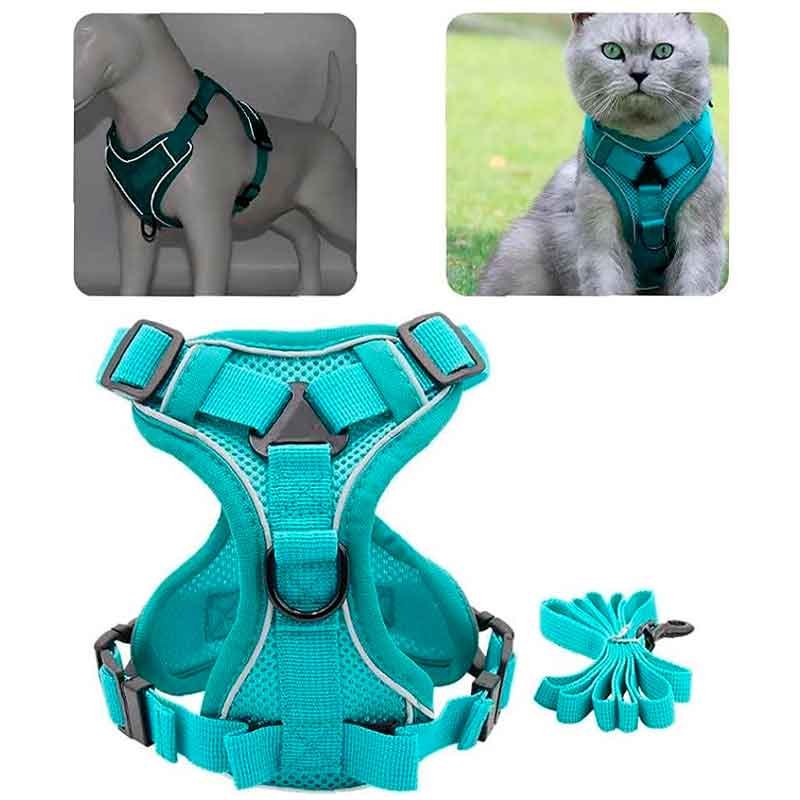 Nuestro arnés para perro mediano está disponible en cuatro vibrantes variedades de colores: rojo, azul, turquesa y rosa. Esta amplia gama de opciones te permite seleccionar el color que mejor se adapte al estilo y personalidad de tu perro, agregando un toque de estilo a sus paseos diarios.