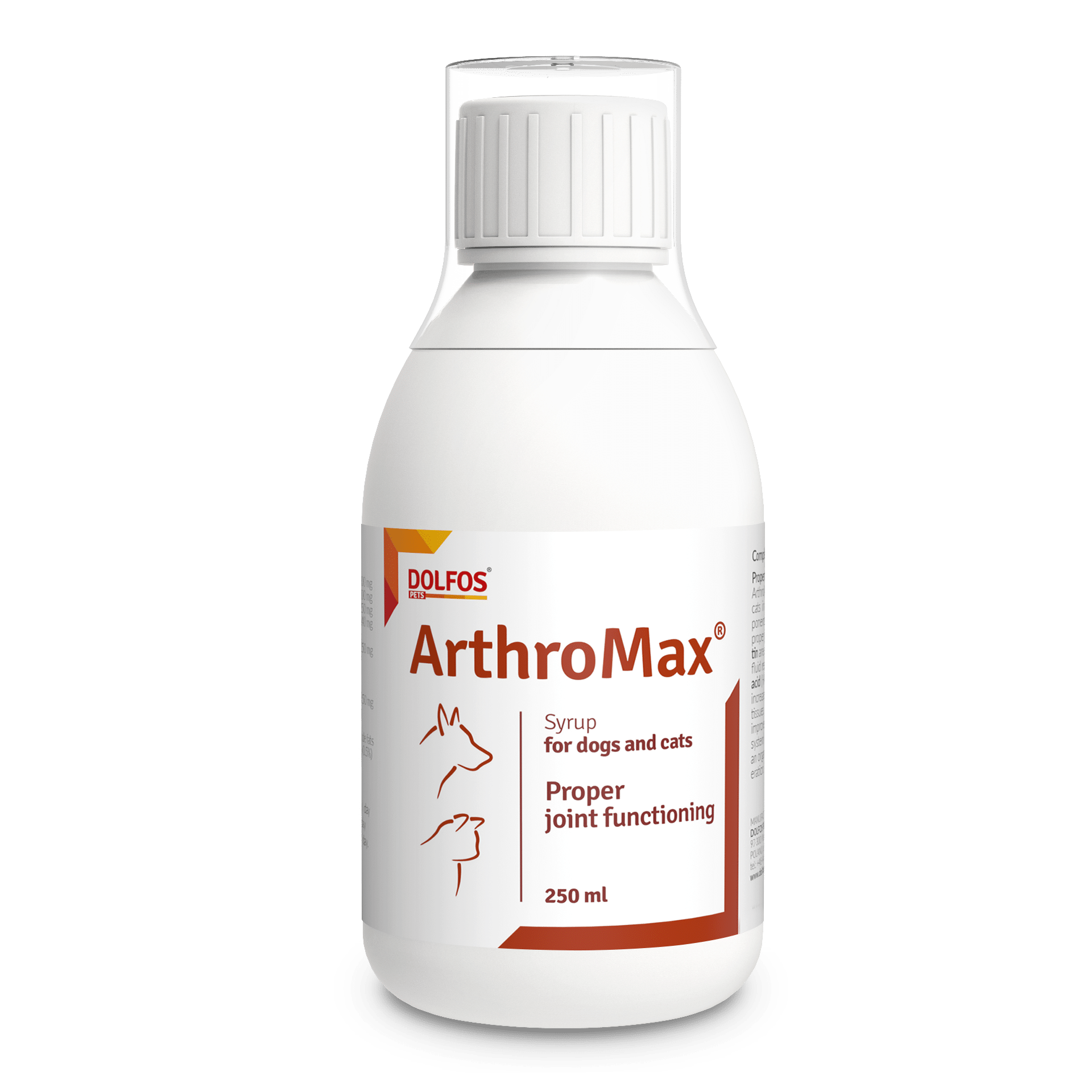 Arthromax, articulaciones de Dolfos para perros y gatos es un condroprotector líquido para el correcto funcionamiento de las articulaciones y huesos. Retrasa la aparición de artrosis, artritis, osteoartrosis, etc.