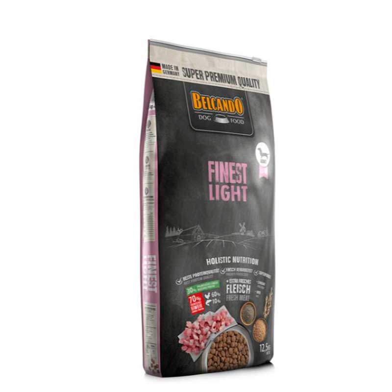 Belcando Finest Light es un alimento natural para perros adultos de raza pequeña con sobrepeso, con tendencia a engordar o de edad avanzada.