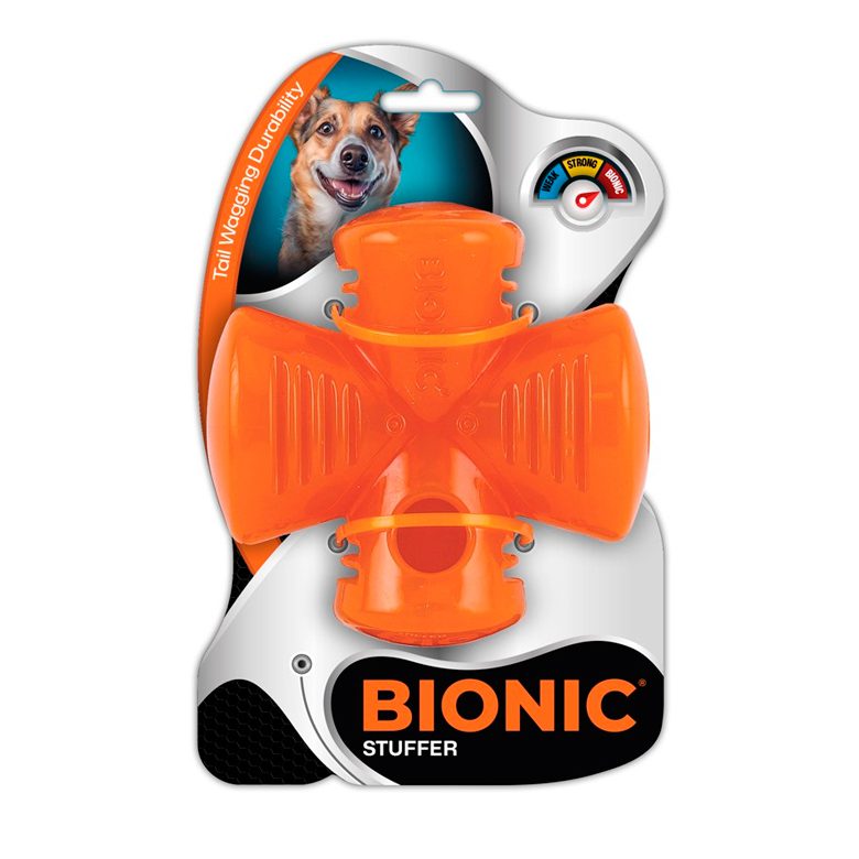 GOMA BIONIC: Los productos BIONIC están fabricados con Goma BIONIC patentada y muy duradera, y están diseñados en EE.UU. con calidad garantizada. La GOMA BIONIC está formulada sin sustancias que no quieres que tu perro muerda, como BPA, plomo y ftalatos, y su durabilidad ha sido probada por un laboratorio estadounidense acreditado por las normas internacionales ISO/IEC y NADCAP.