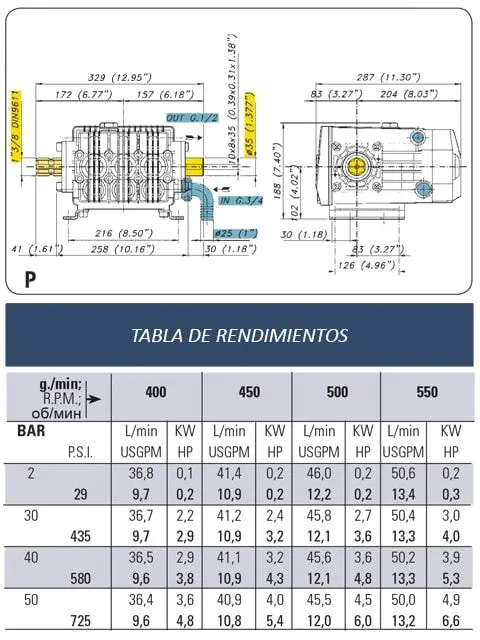 -Para tratamientos de rociadura y herbicidas en cultivos de medianas y grandes dimensiones y para el bombeo de agua en usos industriales y anti-incendio.