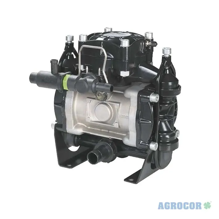Bomba de membrana de baja presión., 2 membranas en NBR., Partes en contacto con el líquido: aluminio plastificado., Presión máxima 20 bar.,
