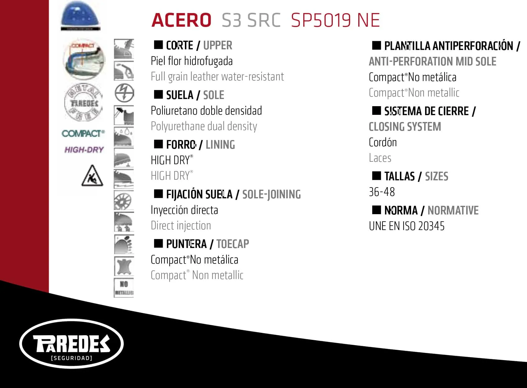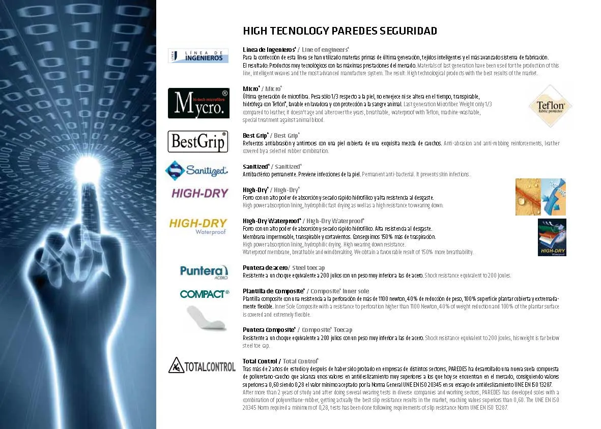 Plantilla Composite con una resistencia a la perforacin de ms de 1100 newton, 40% reduccin de peso, 100% superficie plantar cubierta y extremadamente flexible. Puntera de Composite® resistente a un choque equivalentea 200 julios con un peso muy inferior a las de acero.