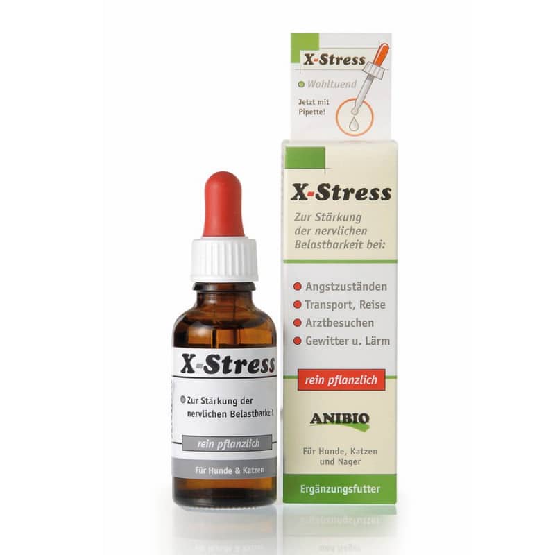 Anibio X-Stress es un calmante natural para perros, gatos y roedores asustadizos o nerviosos que contiene extractos de plantas.