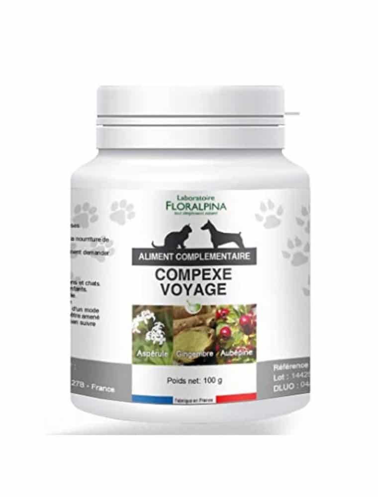 Compexe Voyage de Floralpina es un calmante en polvo para perros y gatos que sufren mareos, vómitos o estrés, o animales que necesitan calma en los viajes.