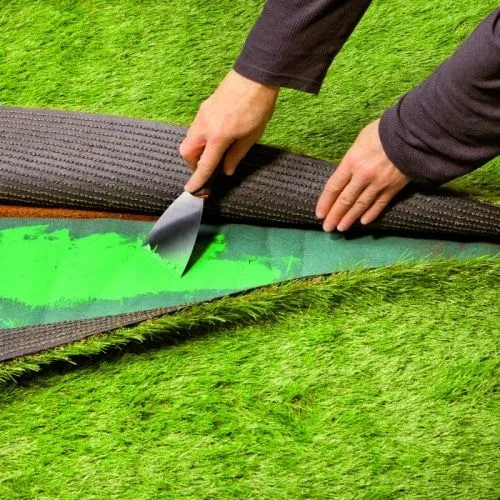 - Aplicar sobre la banda el adhesivo Ceys Césped Artificial y esparcir con la ayuda de una espátula.