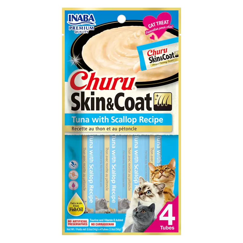 ¡Estas golosinas lamibles para gatos están hechas con ingredientes naturales! Disponible en cuatro deliciosas variedades, el Churu Skin & Coat de atún y ostión tiene un alto contenido de humedad que los felinos necesitan para su salud. Simplemente abra un tubo y apriételo un poco para alimentar a mano estas golosinas sin granos ni conservantes. También puede verterlos en un tazón o usarlos como una cubierta sabrosa en alimentos húmedos o secos.