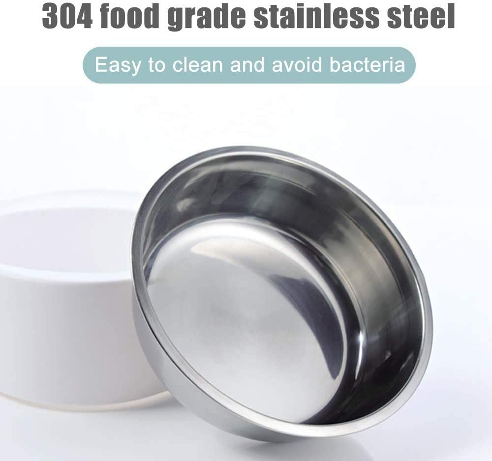 - Plato de agua para comida de mascotas: la placa de separación de higiene puede ayudar a proteger el pelo de la mascota mojándose cuando se bebe y también evita que el polvo y la suciedad contaminen el agua. Cuenco de acero inoxidable grueso, resistente al óxido y a la masticación, duradero para un rendimiento de larga duración.