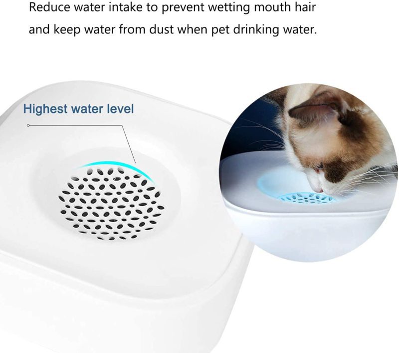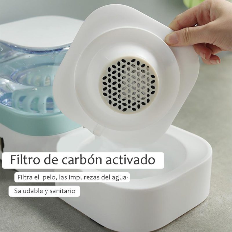 - Alimentador de gravedad tiene una espiral y una válvula de resorte para que puedas quitarlo de la base antideslizante y llenarlo. Sin fugas. Contiene filtro de carbón activado para filtrar eficazmente las micropartículas para garantizar la seguridad del agua potable de las mascotas.