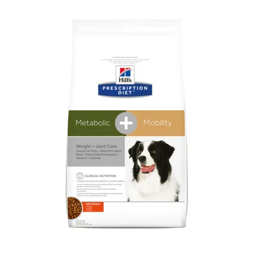 La comida para perro HILLS PRESCRIPTION DIET METABOLIC + MOBILITY PERRO es un alimento seco, concentrado para perro, indicado para el tratamiento de la obesidad y el cuidado de las articulaciones. Requiere la prescripción de un médico veterinario.
