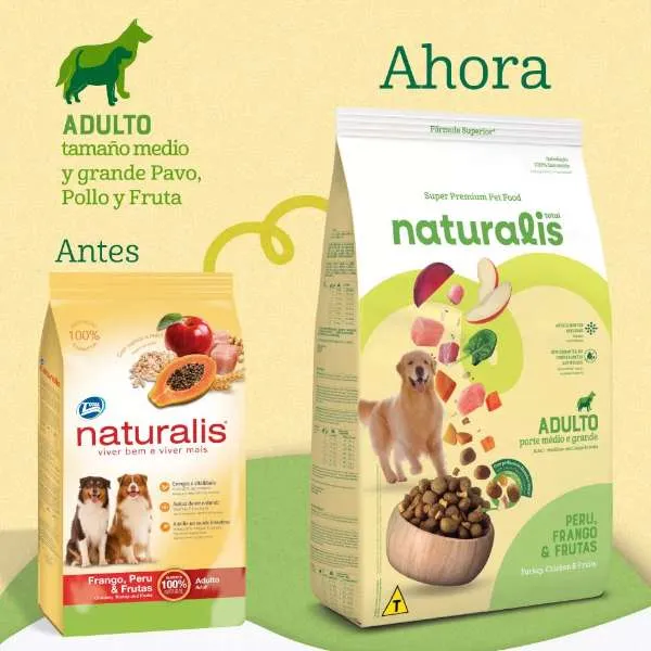 NATURALIS ADULTO FRANGO Y FRUTAS, le das a tu perro sabor, amor y salud en cada bocado. Sin colorantes ni conservantes artificiales, ofrece un 23% de proteína de pavo y pollo, manteniendo a tu peludo activo y feliz..