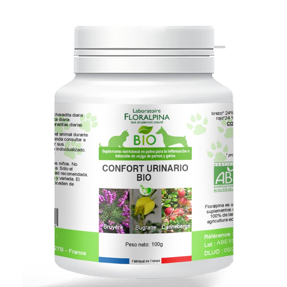 Confort urinario BIO con arándano rojo en polvo para ayudar en la prevención y alivio en problemas de cistitis de perros y gatos (inflamación e infección de vejiga).