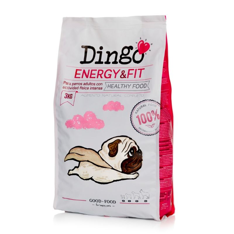 Dingo Energy & Fit es un pienso natural de alta energía completo y nutritivo para perros adultos que necesitan una mayor necesidad energética debido a su alta actividad física. Además Dingo Energy & Fit es un alimento con un buen equilibrio entre energía y proteínas. Junto a su gran asimilación refuerza el sistema inmunitario y fortalece las articulaciones de nuestro perro y por lo tanto estará preparado para realizar ejercicio sin poner en riesgo su salud.