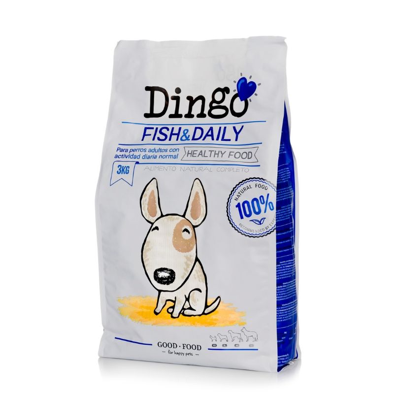 Dingo Fish & Daily es un pienso natural para perros adultos fabricado a base de pescado de alta calidad con un gran valor biológico. La proteína del pescado además de ser muy palatable, también es muy tolerable por el organismo de nuestra mascota. Asimismo es una dieta muy fácil de digerir. Todo esto hace que Dingo Fish & Daily sea un pienso ideal para aquellos perros que tengan problemas de intolerancias alimentarias o alergias.