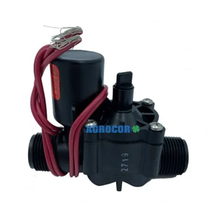 - Válvula eléctrica de riego con toma roscada macho o manguito.