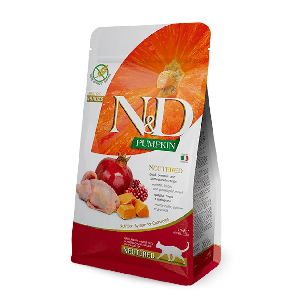 Codorniz (30%), proteína de codorniz deshidratada (28%), almidón de guisante, calabaza deshidratada (5%), huevos deshidratados, grasa de pollo, arenque, proteína de arenque deshidratada, aceite de pescado (de arenque), zanahorias deshidratadas, harina de alfalfa, inulina, fructooligosacáridos, extracto de levadura (fuente de manano-oligosacáridos), granada deshidratada (0. 5%), manzana deshidratada, espinacas deshidratadas, cáscaras y semillas de psilio (0,3%), naranja dulce deshidratada, arándanos deshidratados, cloruro de sodio, levadura de cerveza deshidratada, cúrcuma (0,2%), extracto de aloe vera.