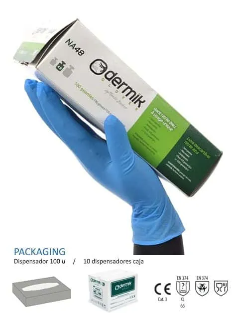El guante desechable NA48 de nitrilo azul es un equipo de protección individual (EPI) diseñado para ofrecer una barrera eficaz contra diversos riesgos en una amplia gama de aplicaciones. Su fabricación en nitrilo, un material sintético de alta calidad, lo convierte en una opción popular en diversos sectores.