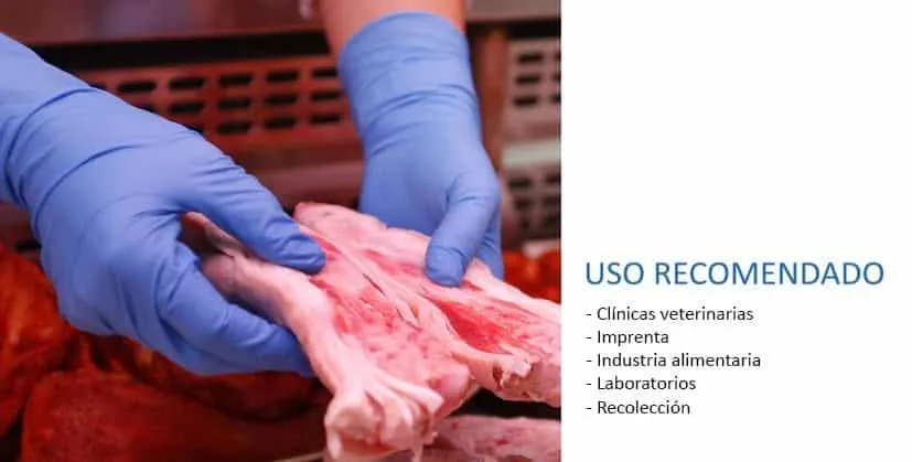 - Industria alimentaria: Manipulación de alimentos, preparación de comidas, limpieza de superficies.