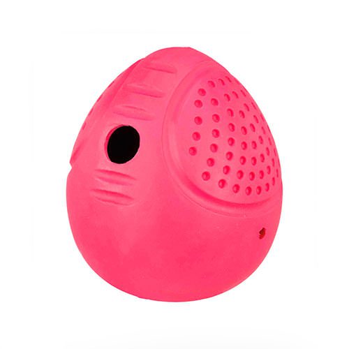 Una pelota de caucho de la cual tu mascota exrtraerá el alimento al hacerla rodar.