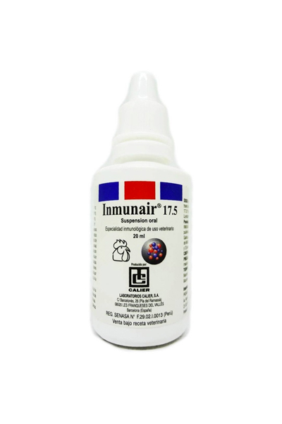Inmunair es un inmunoestimulante biológico formulado a base de Propionibacterium granulosum inactivado, una bacteria que actúa como modulador del sistema inmune en animales. Viene en presentación líquida (frasco de 20 ml), lo que facilita su administración oral, especialmente en mascotas pequeñas o sensibles a los comprimidos.