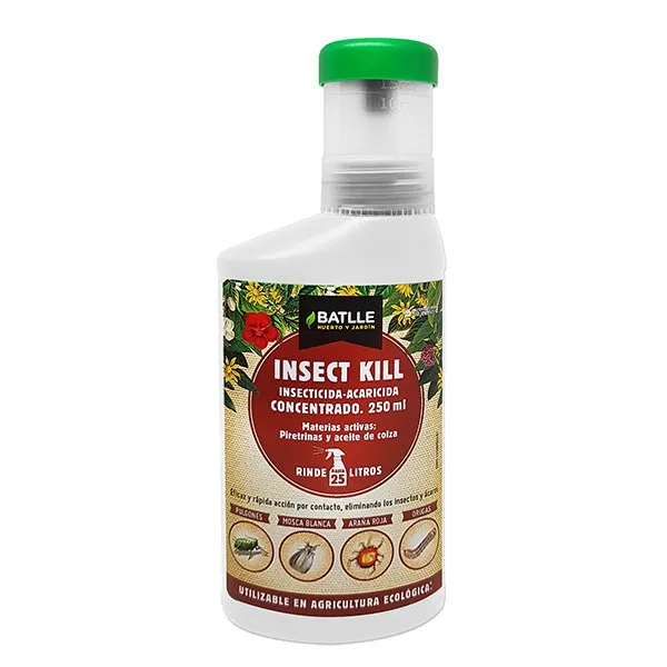 Insect Kill es un insecticida-acaricida de contacto para el control de pulgones, mosca blanca, ácaros (araña roja), orugas y cicindélidos en ornamentales herbáceas y leñosas, en campo e invernaderos.