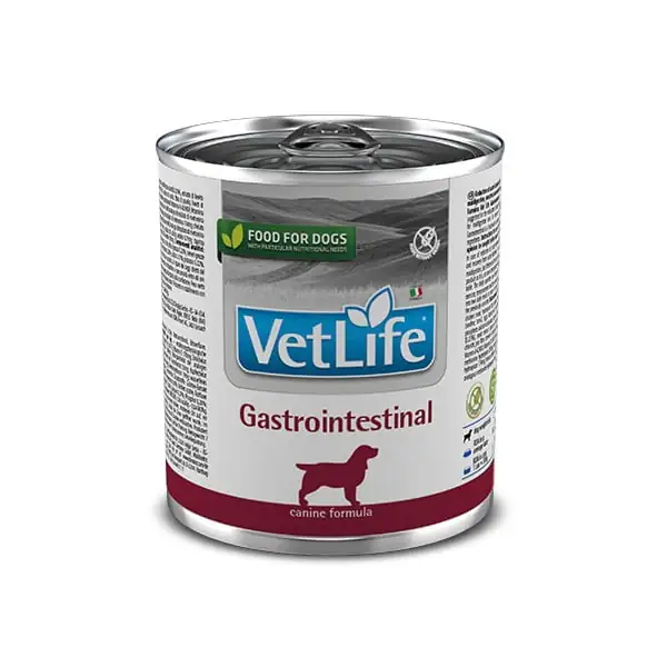 Latas Vet Life Gastrointestinal ¡Con cada pack de Latas que compres en Barrio Animal estarás donando 600 gr de alimento a perros y gatos sin hogar! Alimento medicado para perro