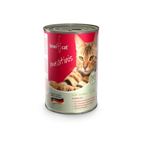 Deliciosa comida húmeda Meatinis Ave Bewicat, puede ser usada como alimento completo o como complemento al pellet.