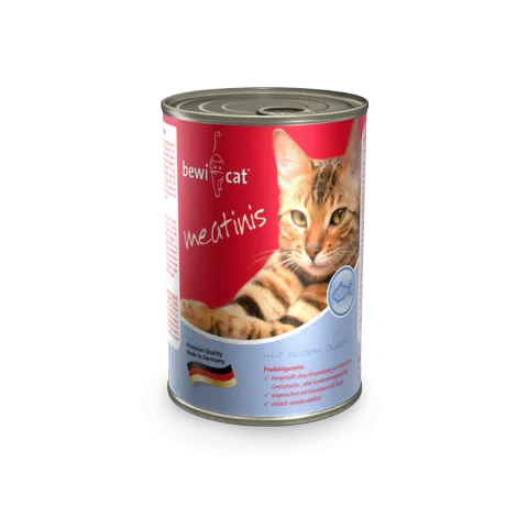 Ingredientes: carnes y subproductos animales (63 %); pescados y subproductos de pescado (5 % salmón); minerales; cáscaras de huevo, secas, proteínas 10,0 %; contenido de grasa 6,0 %; cenizas brutas 2,5 %; fibras brutas 0,4 %; humedad 80 %