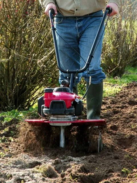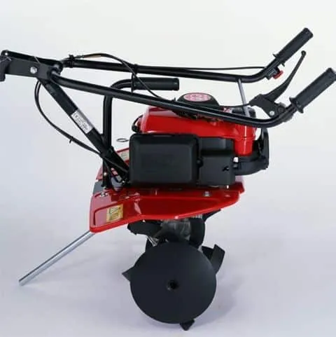 Motoazada con un ancho de trabajo de 45cm, equipada con fresas estándar para trabajos en pequeños huertos de uso particular.