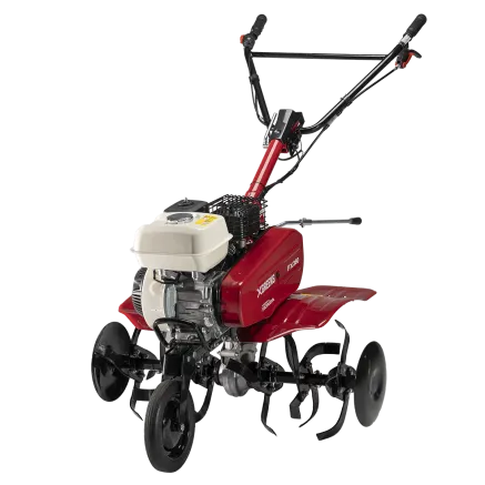La motoazada XGREENS™ FX 360 Powered by Honda ofrece total versatilidad y comodidad para su uso en una amplia variedad de tareas del huerto y el jardín durante todo el año, a un precio muy competitivo. Está equipada con un fiable motor Honda GP160 e Incluye robustas fresas de eje hexagonal, de 3 coronas más disco por cada lado, que permiten el desmontaje de la última corona para disminuir el ancho de trabajo si fuera necesario.