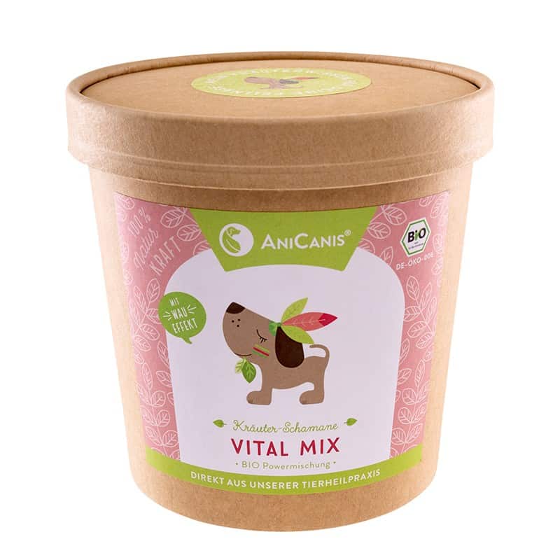 Multivitaminas y minerales BIO Anicanis para perros (Vital Mix) contiene 14 ingredientes en polvo: vitaminas, minerales, antioxidantes, oligoelementos, fibra, aminoácidos esenciales y valiosas enzimas. Libre de azúcar añadido, sin aditivos, colorantes, saborizantes ni conservantes.