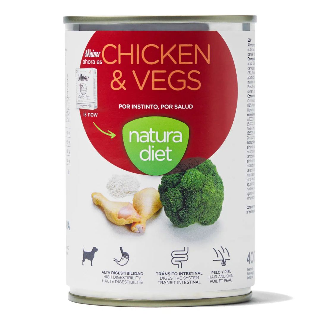 Natura Diet Chicken & Vegs es un alimento húmedo completo, natural y nutritivo, especialmente formulado para satisfacer las necesidades biológicas y nutricionales de los perros adultos.