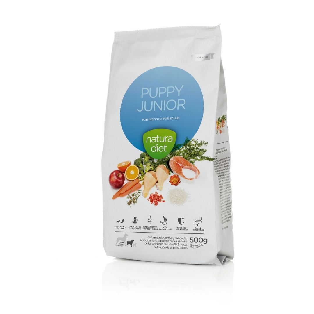 NATURA DIET PUPPY JUNIOR CHICKEN es un pienso para perros cachorros, completo y equilibrado.