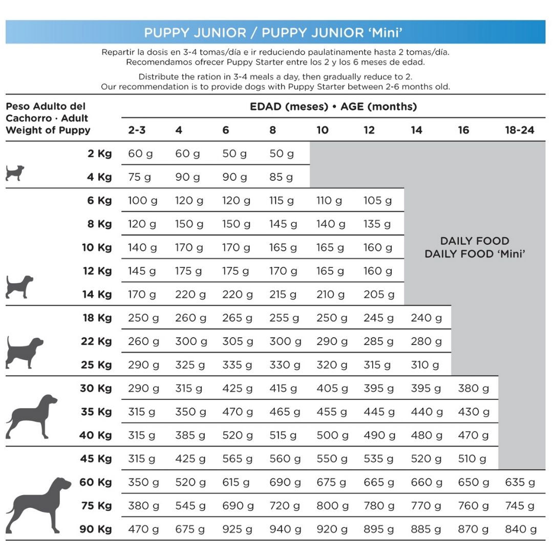 Pienso especifico para perros cachorros de razas medianas que se utiliza hasta los 8 – 12 meses de edad.