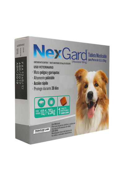Su componente llamado afoxolaner es un insecticida y acaricida que pertenece a la familia de las isoxazolinas.