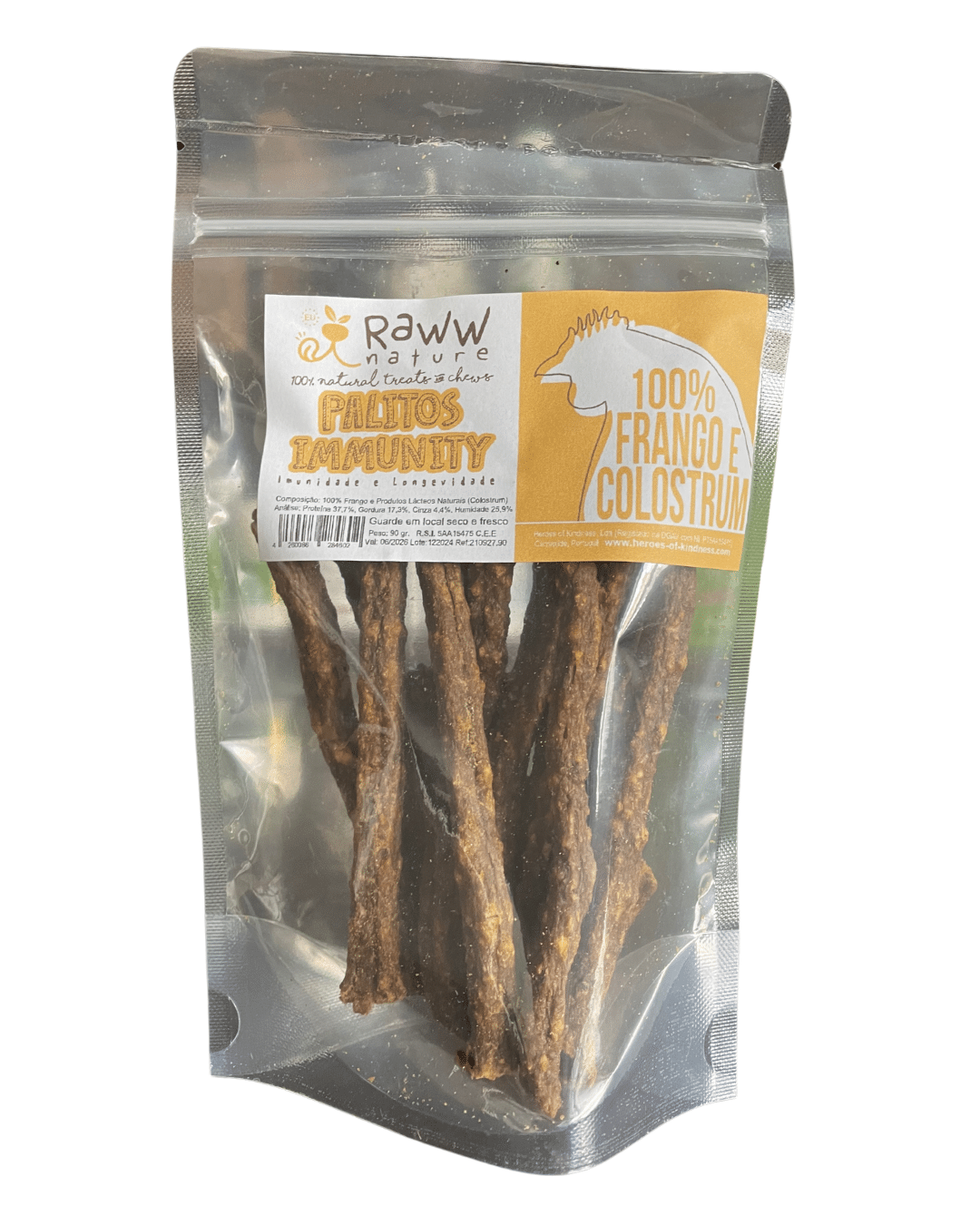Palitos immunity son snacks naturales de pollo con calostrum que apoyan el sistema inmunitario de perros.