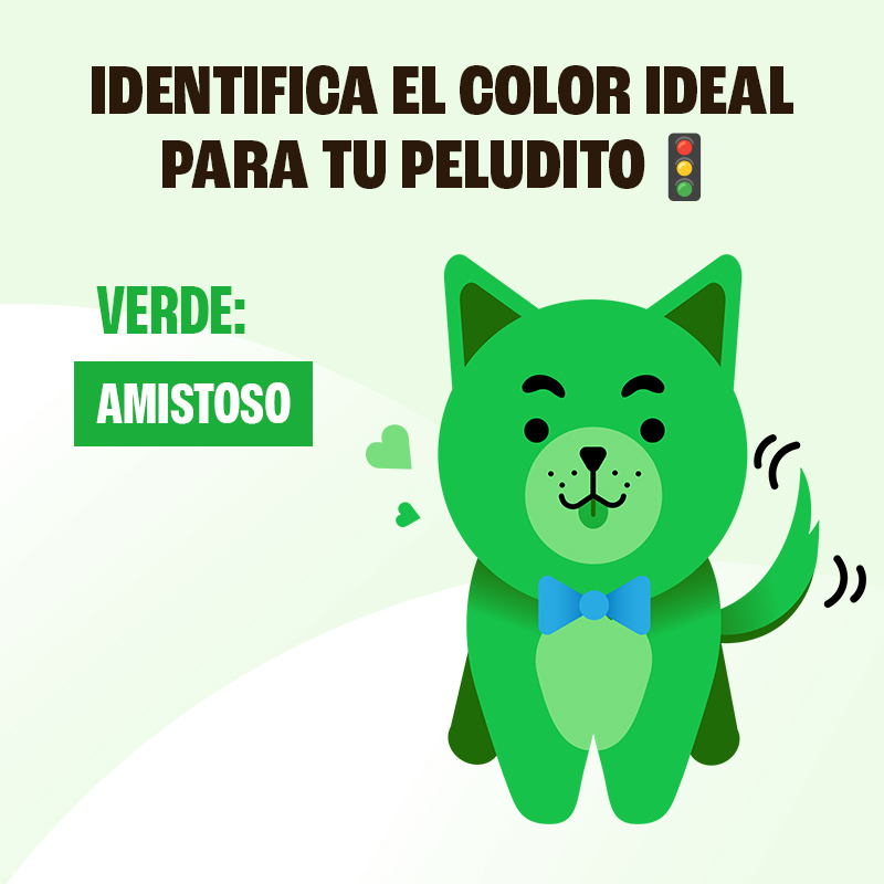 - 💚 El color verde significa que el perrito es amistoso, por lo que se pueden acercar tanto como perritos y dueños a tu peludo.