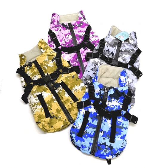 • Arnés para perro: este abrigo para perros pequeños y medianos con arnés incorporado, es conveniente para el invierno al aire libre, caminata, senderismo o viajes.