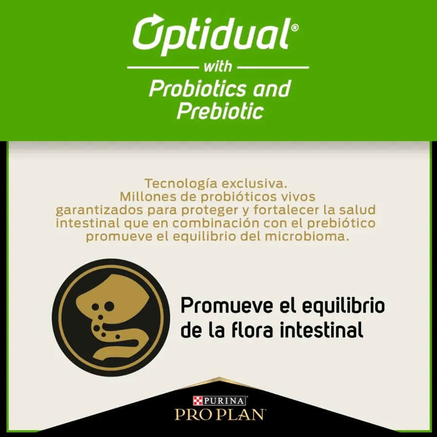 Formulado con carne de pavo como primer ingrediente, fuente alternativa de proteína hipoalergénica en perros no expuestos previamente e ideal para perros sensibles. Incluye la tecnología exclusiva Optidual, que combina prebiótico y probióticos vivos garantizados que contribuyen juntos a la salud del sistema digestivo