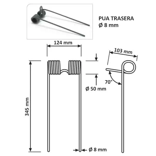 Púa de rastra ø 8 mm trasera