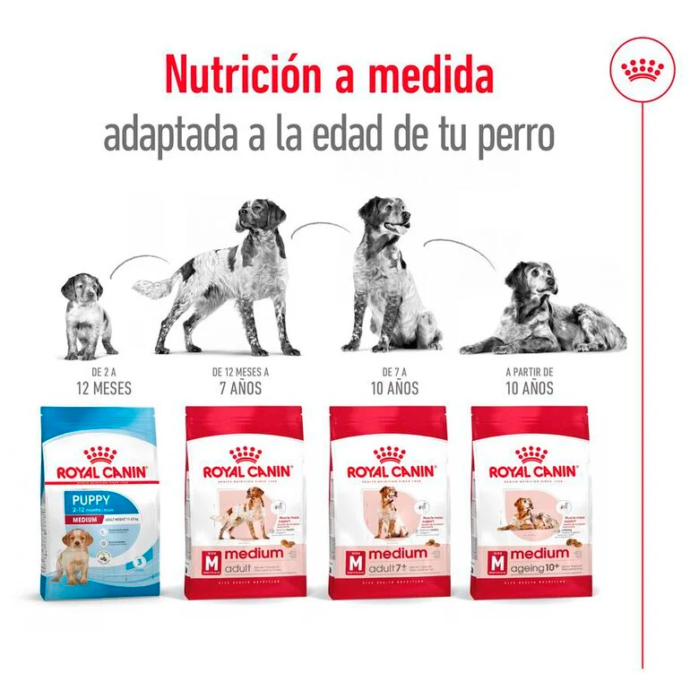 Royal Canin Medium Adult 7+ Ayuda a promover una óptima tolerancia digestiva gracias a una fórmula exclusiva que incluye proteínas de elevada calidad y un aporte equilibrado de fibras alimentarias.