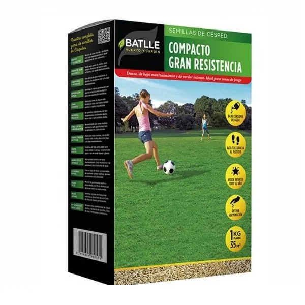 -Las Semillas Césped Compacto Gran Resistencia son una mezcla de especies cespitosas ideal para zonas de tráfico o mucho pisoteo en las que pretendemos tener una buena calidad estética, un buen color de césped con bajas necesidades de mantenimiento y riego.