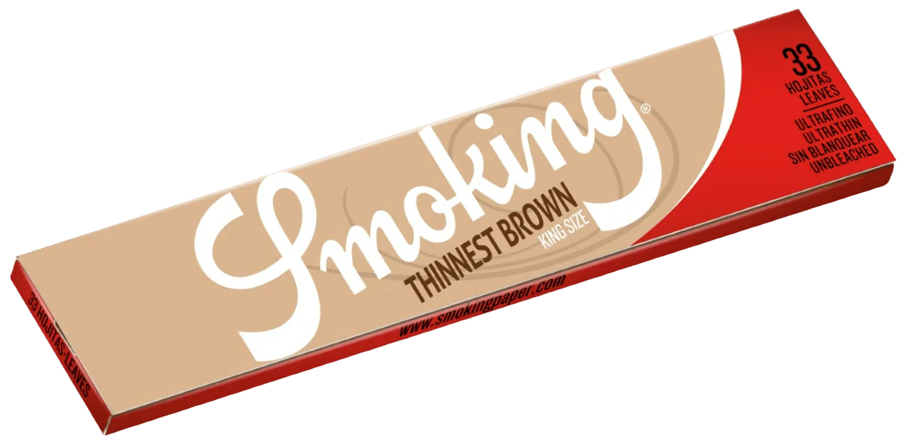 Descubre el papel de fumar extrafino sin transparencia smoking thinnest brown ks y de combustión lenta y 100% libre de cloro.