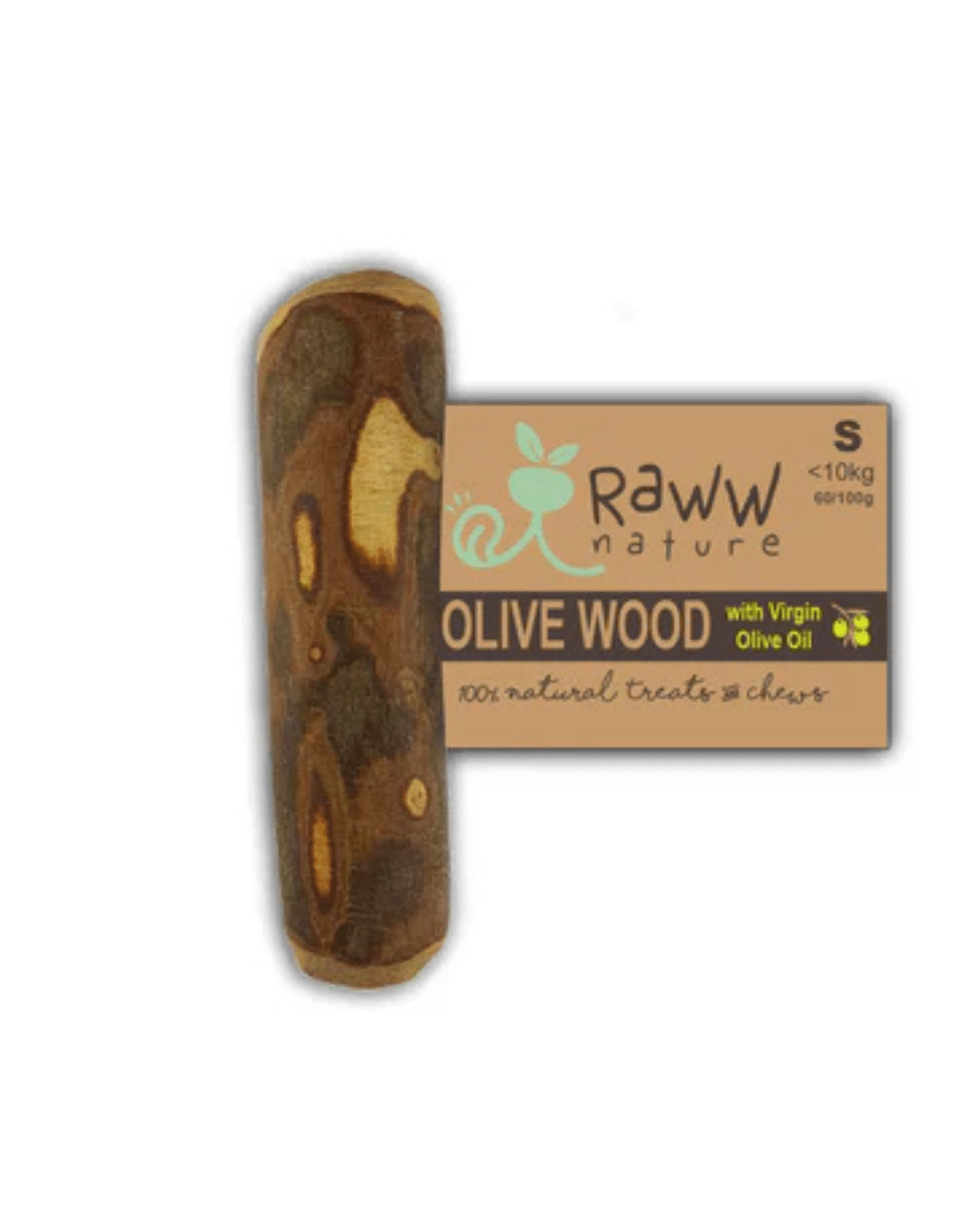 Un snack / juguete 100% natural y duradero de madera de olivo.