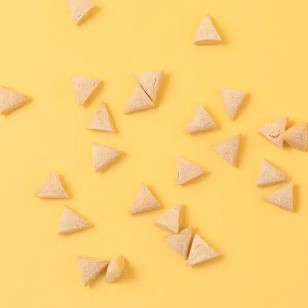 guisantes (48%), tapioca (20%), glicerina (18%), mantequilla de cacahuete sin xilitol (6%), levadura hidrolizada (6%), lignocelulosa (2%), harina de guisantes, Lactobacillus helveticus 15×109 células /kg