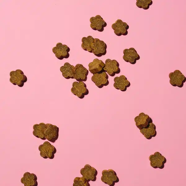 Snacks calmantes con probióticos para perros de Pooch & Mutt calman y a la vez son probióticos para tu perro.